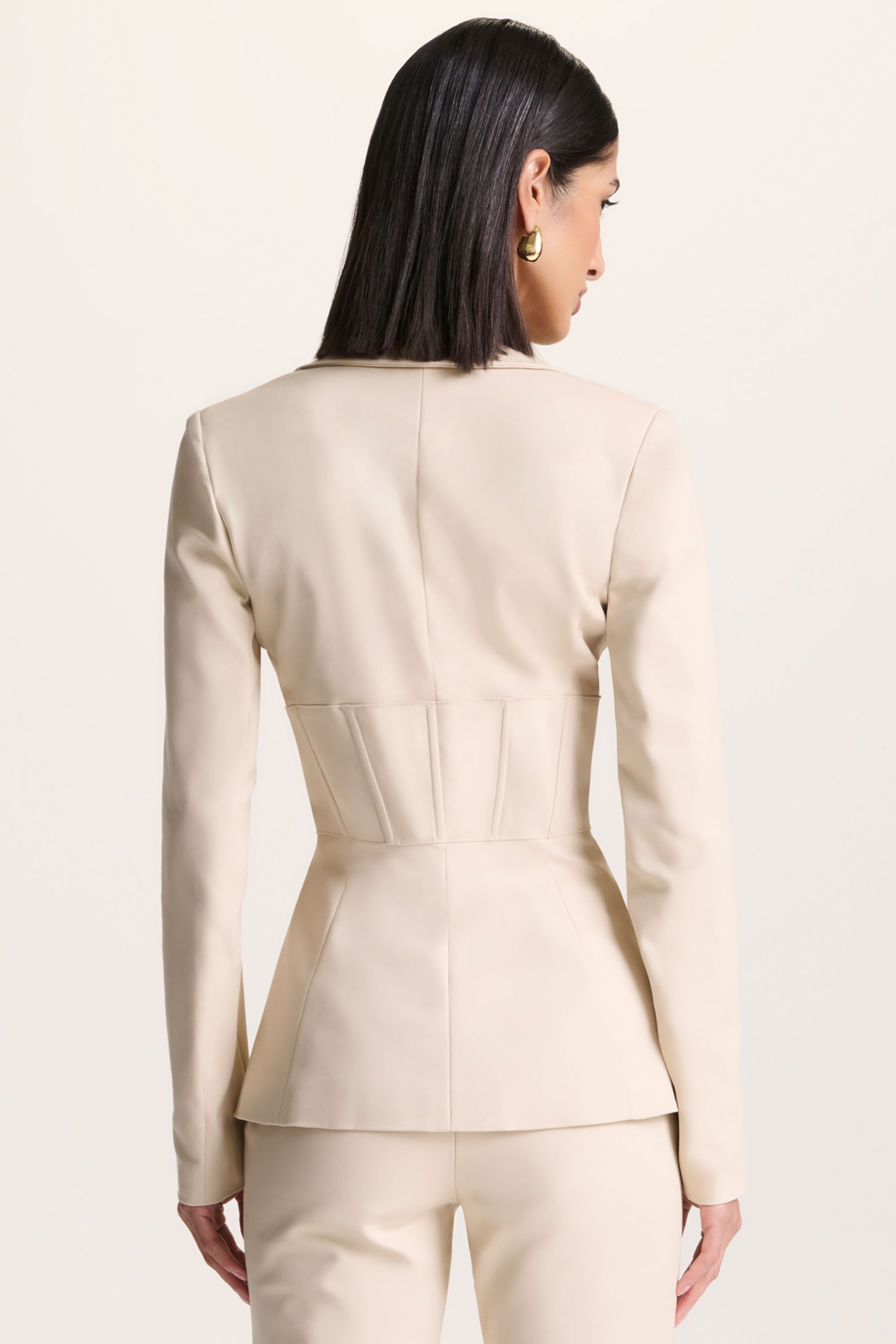 Unbeaten | Cream Plunge Corset Waist Blazer