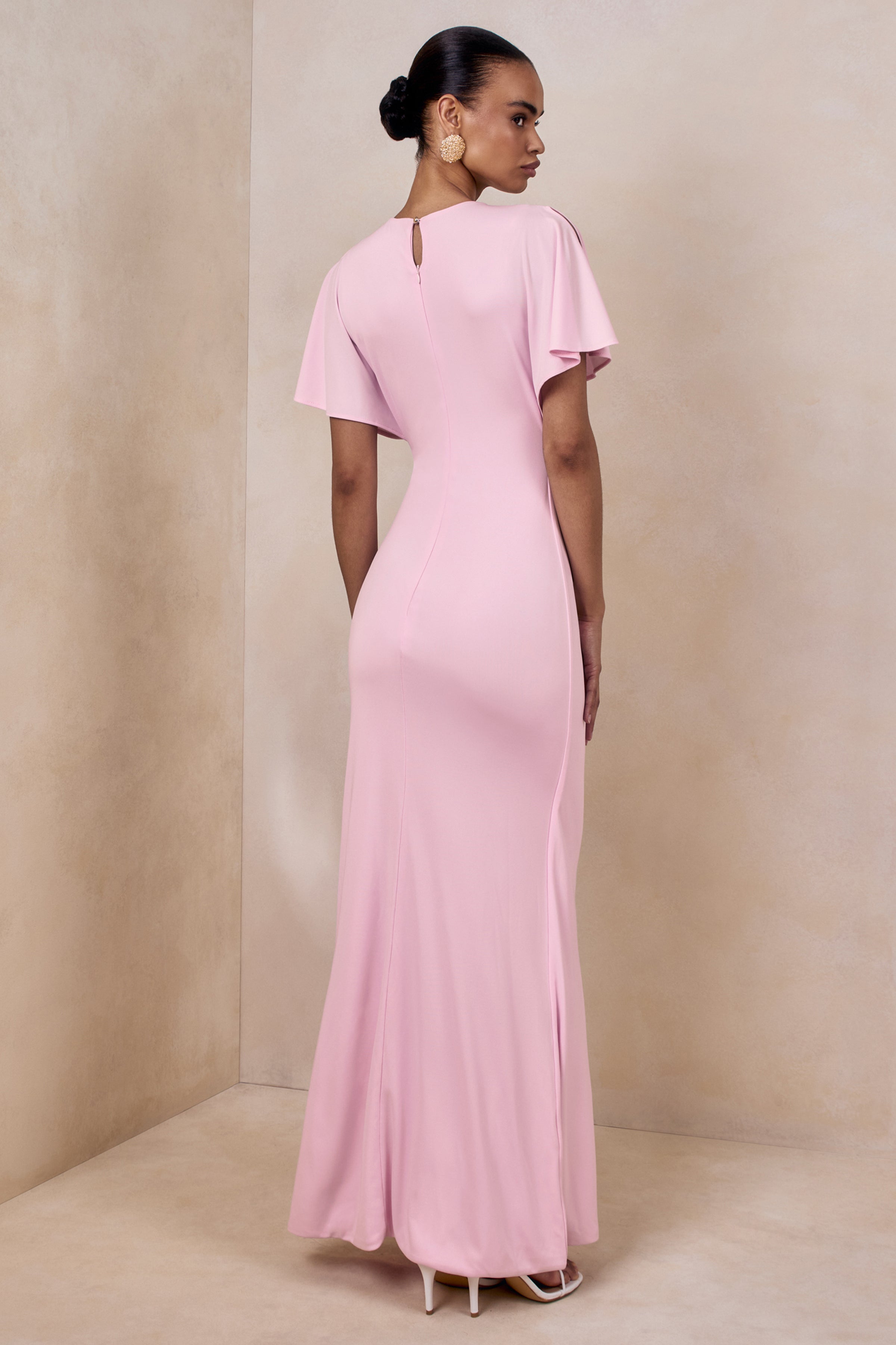 Grandeur | Pale Pink High-Neck Ruched Maxi Dress