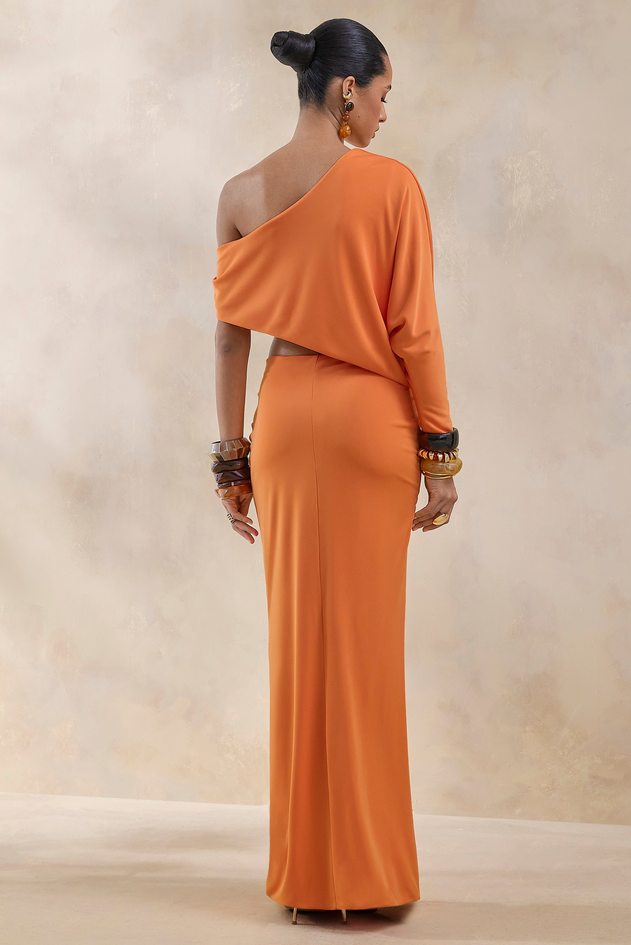 Marlena | Orange Twisted Split Maxi Skirt