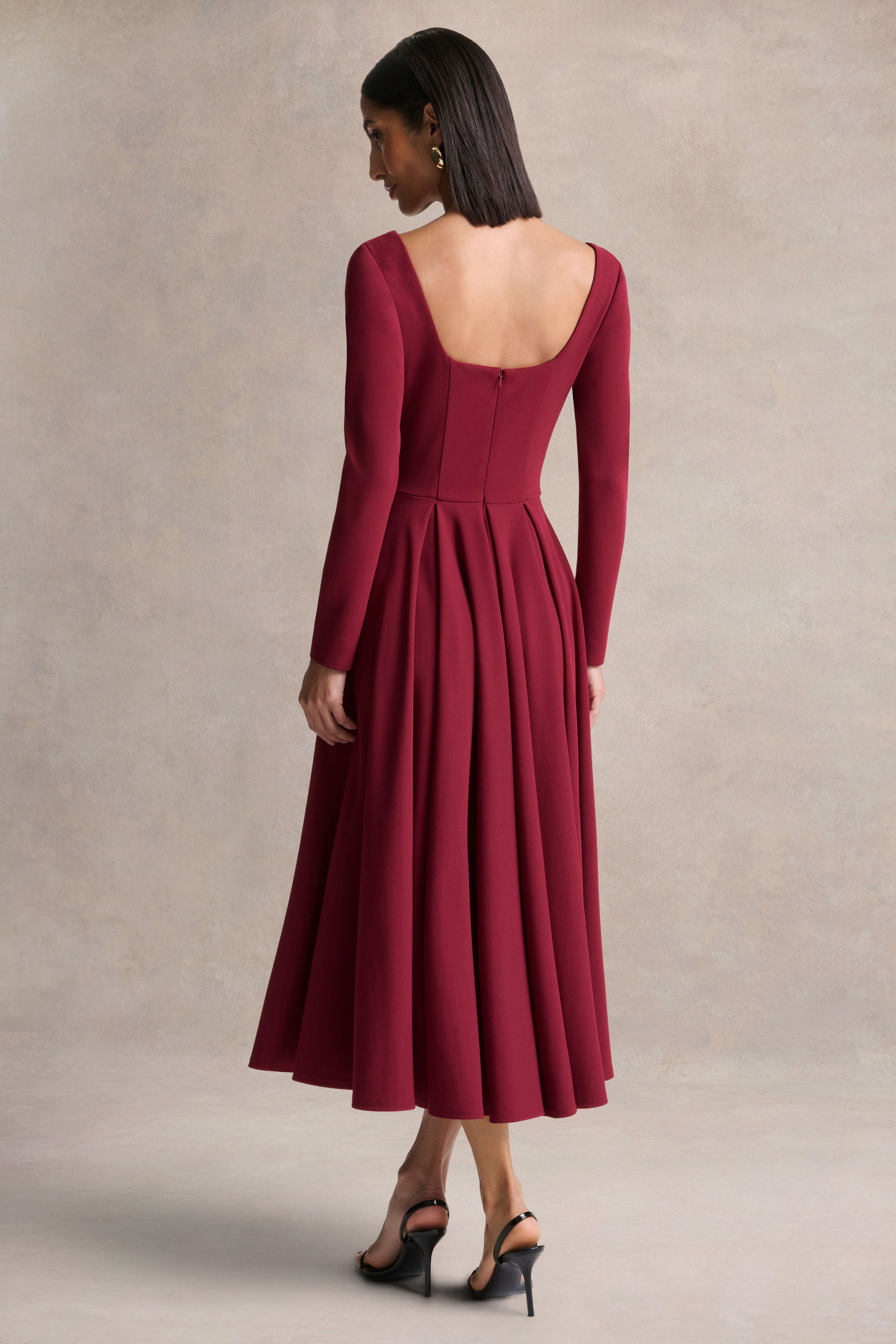 Andromeda | Burgundy Sweetheart-Neck Midi Dress