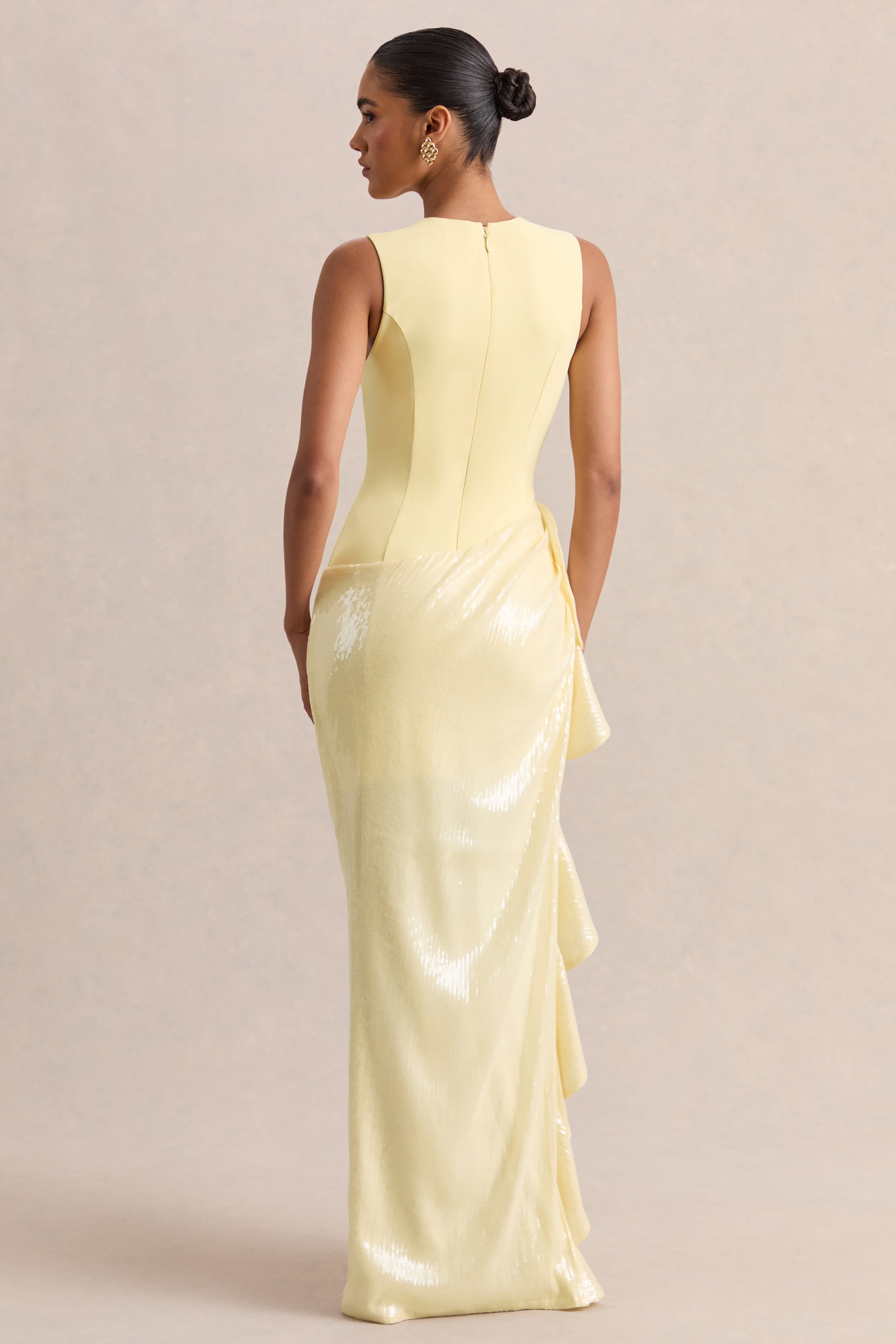 Ada | Lemon Crew-Neck Maxi Dress With Sheer Skirt And Ruffled Detailing