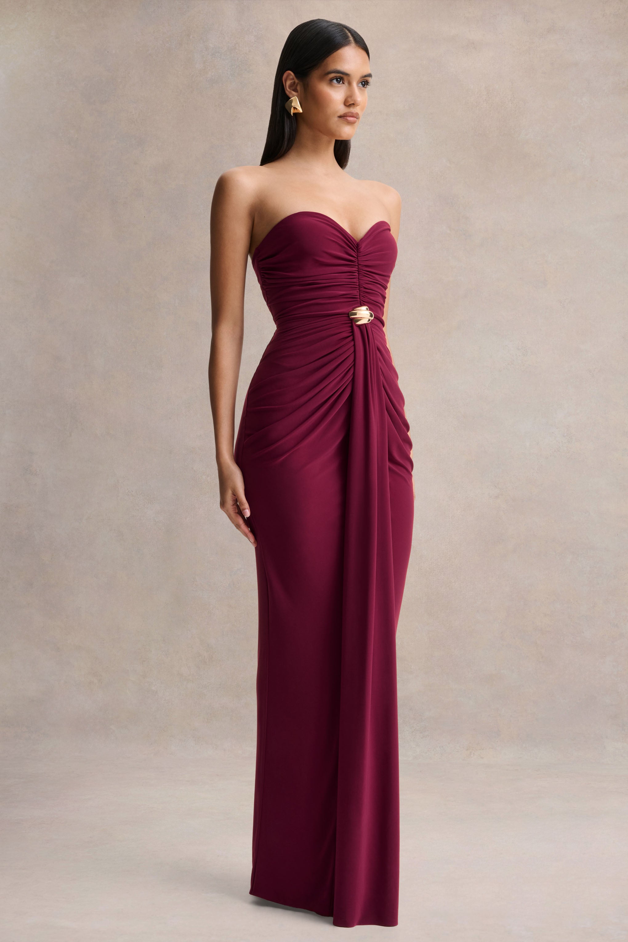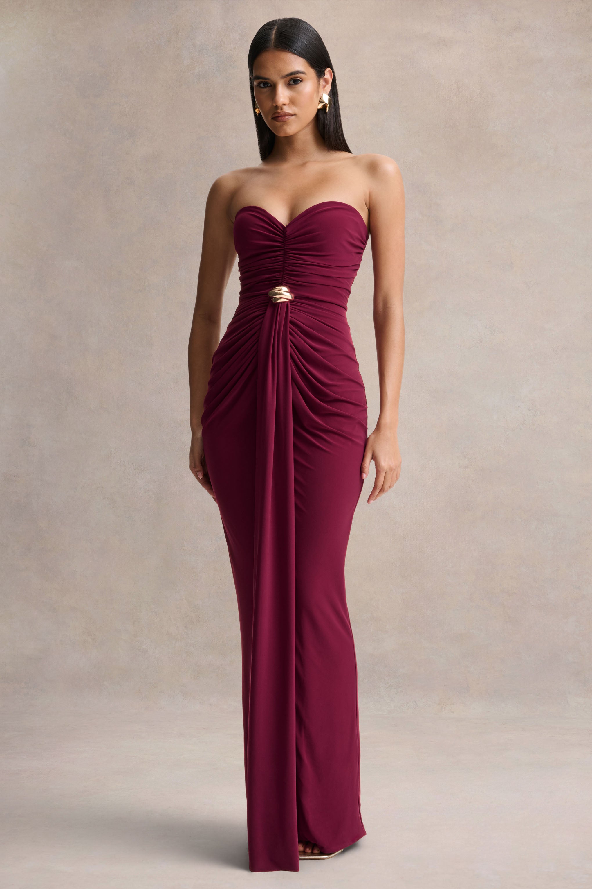 Sculpted and sleek. Beverly is the occasion-wear piece of the season. Designed in a rich burgundy hue of our premium stretch jersey. this maxi provides a gorgeous feminine silhouette. The sweetheart neckline elegantly frames the decolletage whilst the gold-knot detail creates an hourglass silhouette. with a touch of glamour. From wedding guest to elegant date nights. in Beverly you won't be forgotten.