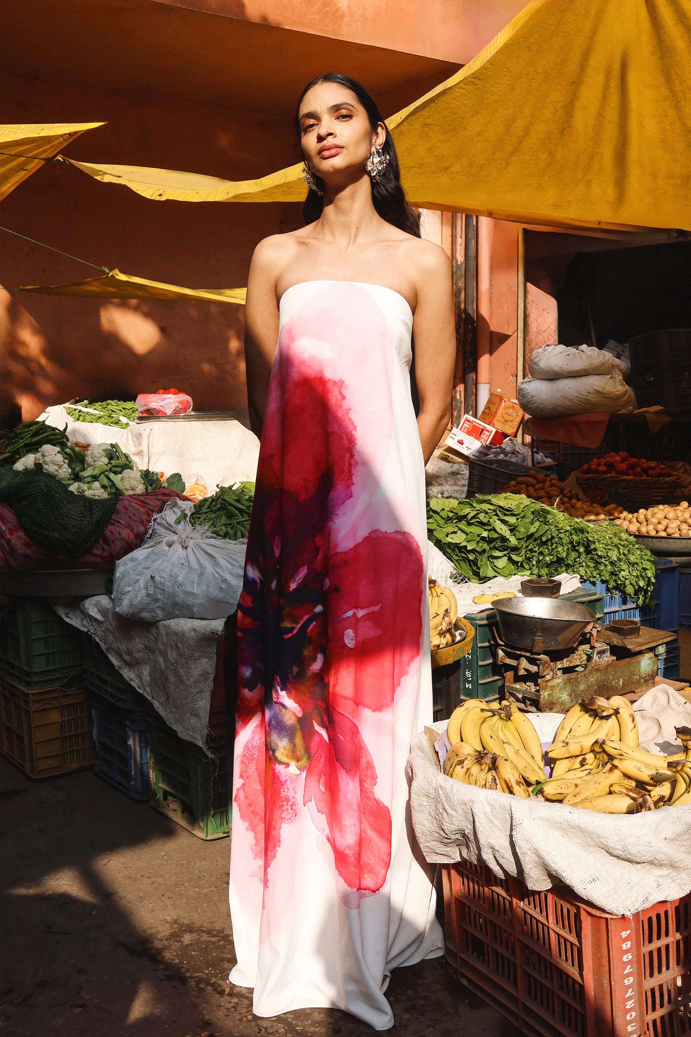 Bold. feminine. and undeniably chic. Breonna is designed to make an entrance. Crafted from our premium woven fabric. this maxi dress features a vibrant bright pink floral placement print that adds a romantic edge to its sleek structure. The bandeau neckline is supported by an internal corset for a secure fit. while the flowing. relaxed fit brings graceful movement to every step. Perfect for weddings. race days. and summer occasions that call for all eyes on you.