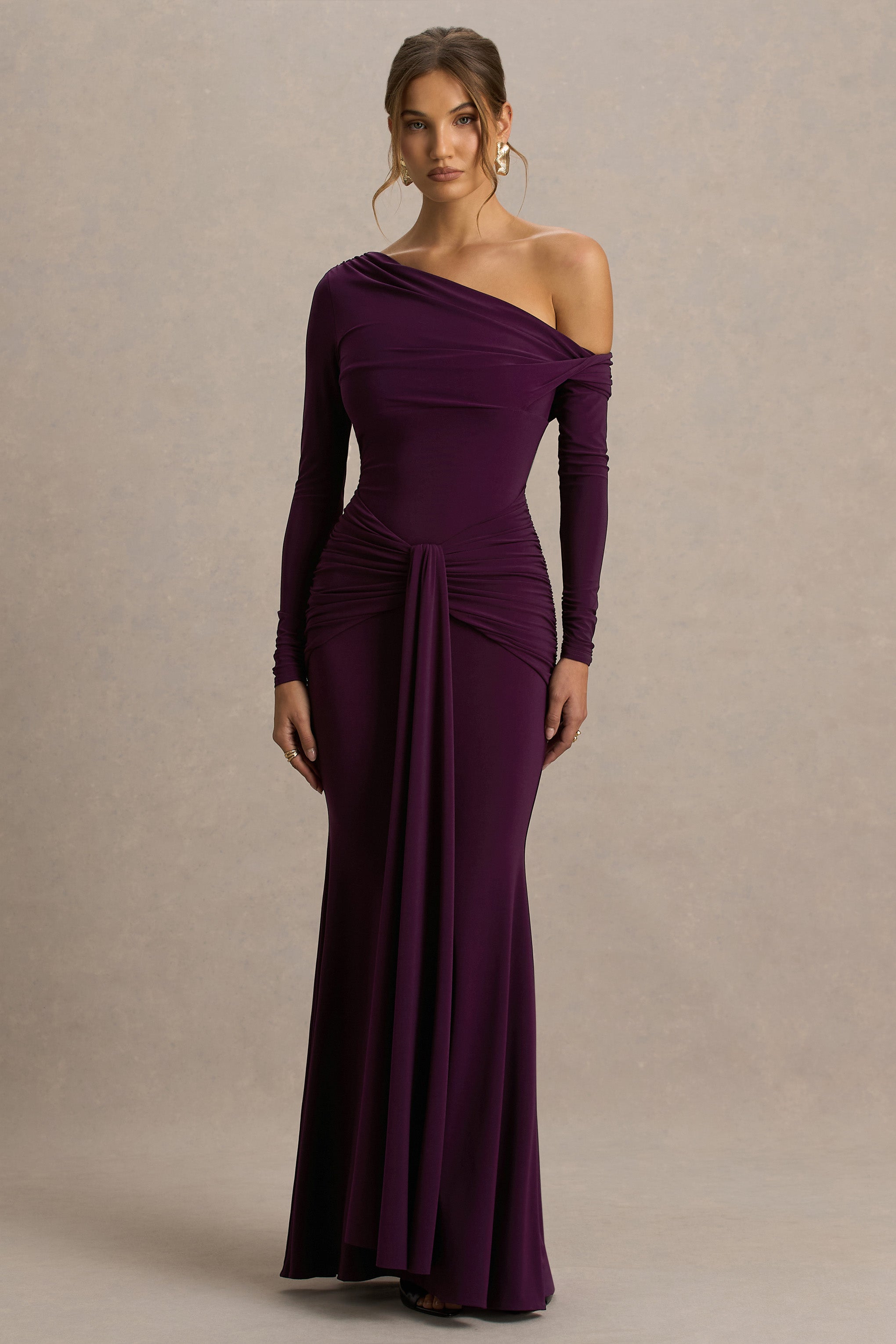 Meet Clover . a dress designed to sculpt. flatter. and make an entrance. Cut from our premium stretch jersey in a deep burgundy. it hugs the body while allowing effortless movement. The asymmetric neckline creates a striking silhouette. balanced by gathered detailing that contours the figure beautifully. At the waist. a flowing sash draws the eye to create an hourglass silhouette. Elegant yet impactful. Clover is the perfect balance of timeless style and modern allure.